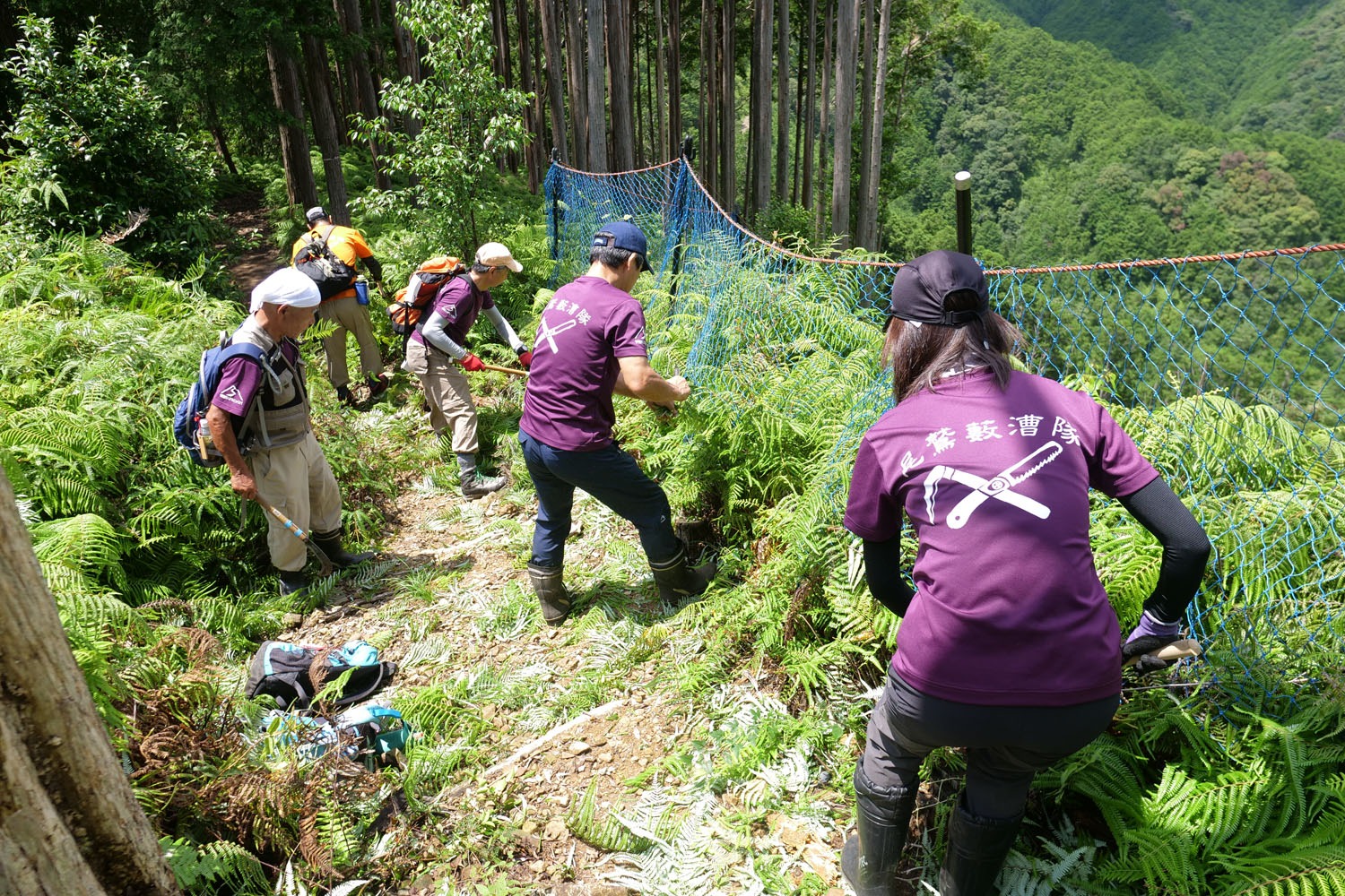 こうして2013年、林さんと内山さん、内山勝稔さん、福田さんの4人を中心に1年かけて尾鷲トレイルを本格的に調査した後、整備がスタート。鎌とのこぎりが主な道具だったので、300mで1週間かかった区間もあったという。 2017年5月からはキロポスト設置を始め、同年12月に完了。現在は濱田哲さん、木許勝弘さん、可知景子さん、松場弘さんらが加わった薮漕隊の活動によりトレイルは維持されている。